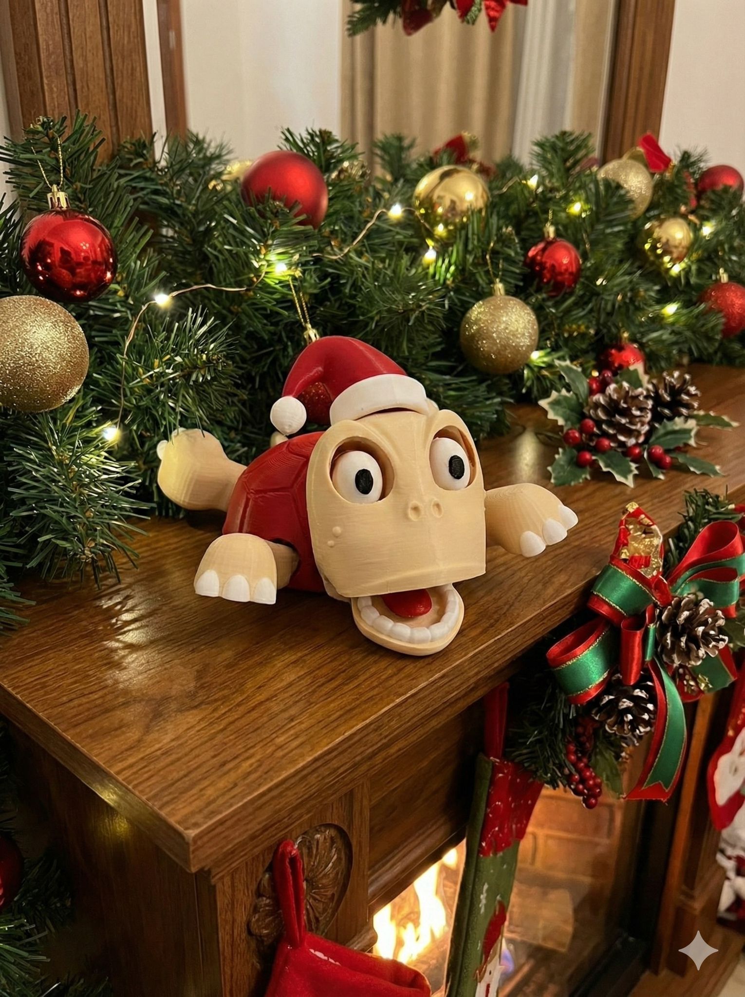 Noel Şapkalı Kaplumbağa Bardak Tutucu